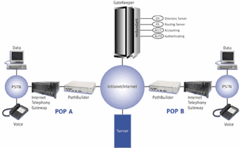 Los gateways de VoIP proveen un acceso ininterrumpido a la red IP. Las llamadas de voz se digitalizan, codifican, comprimen y paquetizan en un gateway de origen y luego, se descomprimen, decodifican y rearman en el gateway de destino. Los gateways se interconectan con la PSTN según corresponda a fin de asegurar que la solución sea ubicua.